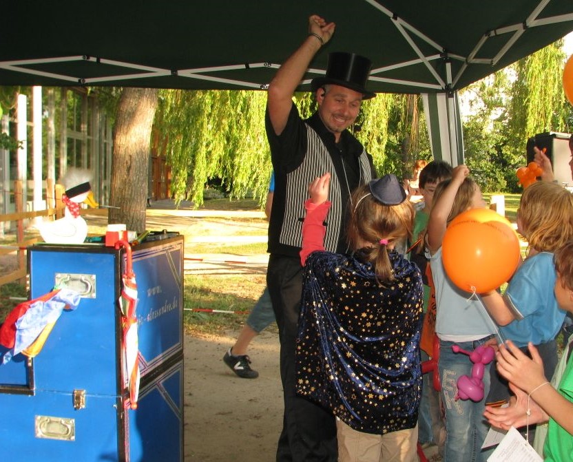 Das moderne und kindgerechte Interaktivzauberprogramm wurde auf pädagogischer Grundlage entwickelt und eignet sich für Kinder im Alter von 4 – 10 Jahren. Ausgestattet mit Zauberhut, Zauberumhang und Zaubertab gehen wir den geheimnisvollen Dingen der Zauberei näher auf den Grund. Durch das aktive Einbinden der Zuschauer erleben die Kinder selbst, dass das Zaubern manchmal gar nicht so einfach funktioniert, wie es aussieht. Doch durch den richtigen Zauberspruch und der richtigen Dosis Zaubersalz, gelingt die Zauberei dann doch wie von selbst.