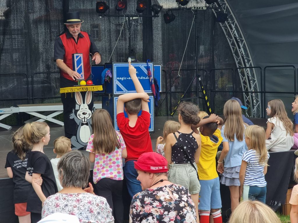 Die Kinderzaubershow ist ähnlich aufgebaut wie das Kinderprogramm und dauert ca. 45 – 60 Minuten. Diese Interaktivshow eignet sich für Veranstaltungen ab 20 Personen. Entsprechend der Veranstaltungsgröße kann eine Verstärkeranlage gestellt werden, sodass auch Gäste auf den hinteren Plätzen der Zaubershow problemlos folgen können.